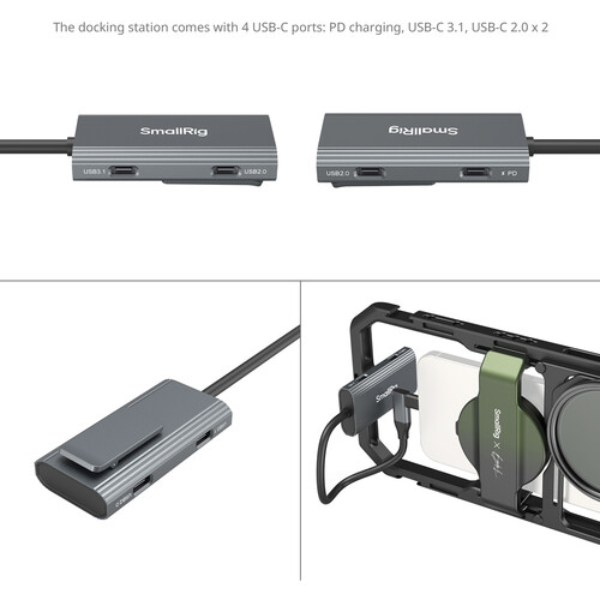 ◉ Docking & alimentation : Hub USB‑C 4 en 1 (PD 100 W + USB‑C 3.1 + 2× USB‑C 2.0) + support power‑bank