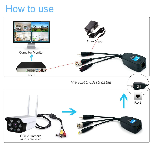 VIDEO BALUN CONVERTISSEUR 8MP AVEC PORT RJ45 POUR CAMERA DE VIDEO SURVEILLANCE HD, DONNEES D'ALIMENTATION ET AUDIO
