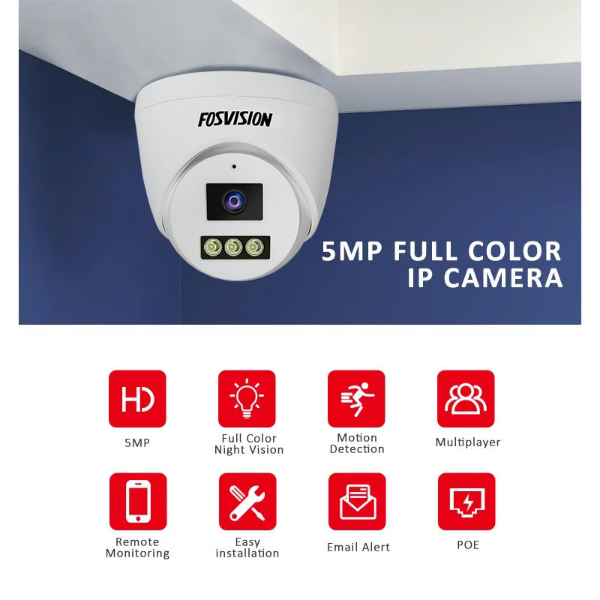 Oeil Caméra Dome IP PoE Full Couleur+Audio 5MP Intérieure
