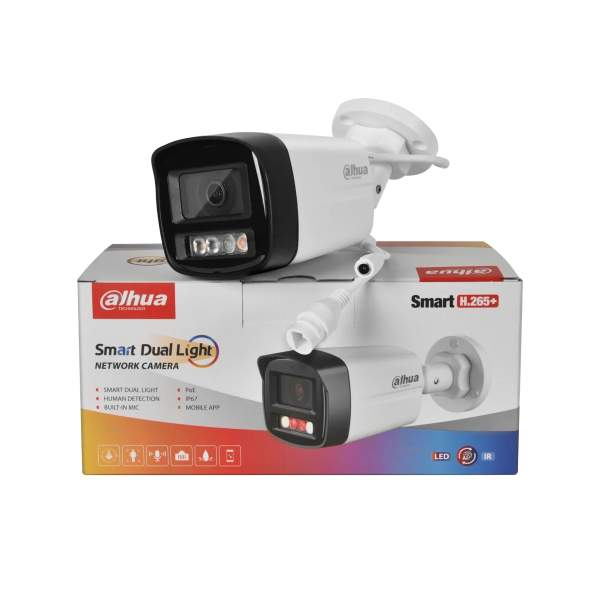 Dahua - Oeil Caméra IP PoE Extérieur bullet 2MP Full Color avec LED intelligente et audio intégré