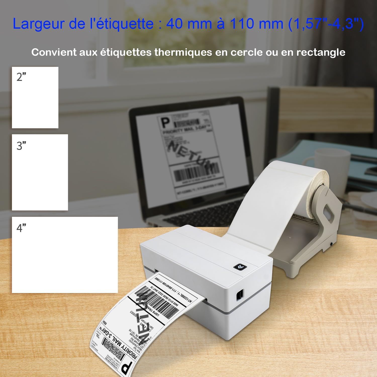 NETUM NT-LP110F Imprimante d’étiquettes, Imprimante Thermique Impression de Codes à Barres Possible Permet d’imprimer Une Lettre pour Les envois nationaux et internationaux pour Votre PC/Mac